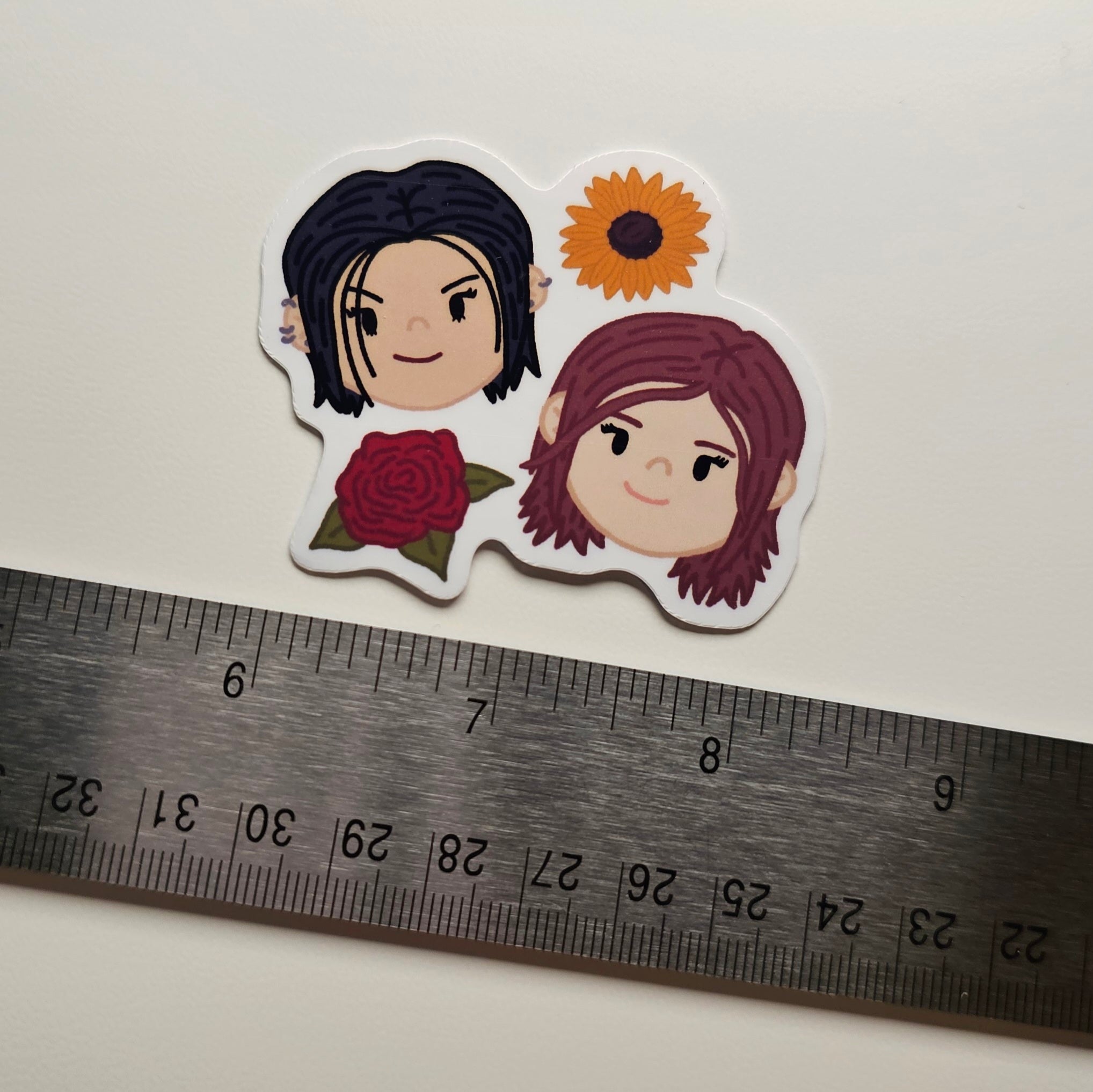 This sticker is est. 2.5". You can decorate anything and everything with these stickers! I personally like to decorate my photocard binders and label printer! The sticker also features holographic details in the letter shadows and around the border.
